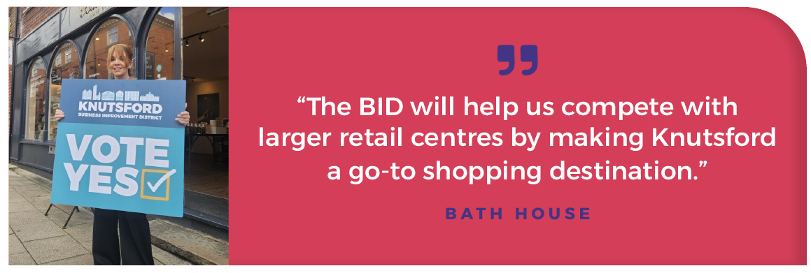 “A BID would be a first for Knutsford—something completely new and never tried here before. It’s a chance for us, the business community, to take the lead and make our own decisions about what our town really needs—not wait around for government direction. With £1million of private sector funding, we have the opportunity to drive bold, practical change that benefits Knutsford right now and builds a stronger future on our own terms.